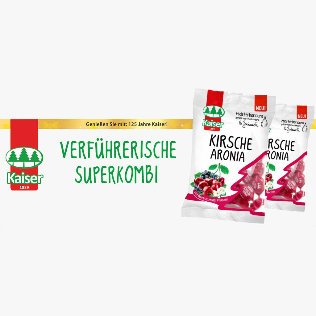 Sein 125-jähriges Bestehen feiert Kaiser mit dem, was der Bonbonmeister am besten kann: neue gefüllte Meisterbonbons wie die Kirsche Aronia Zuckerl.